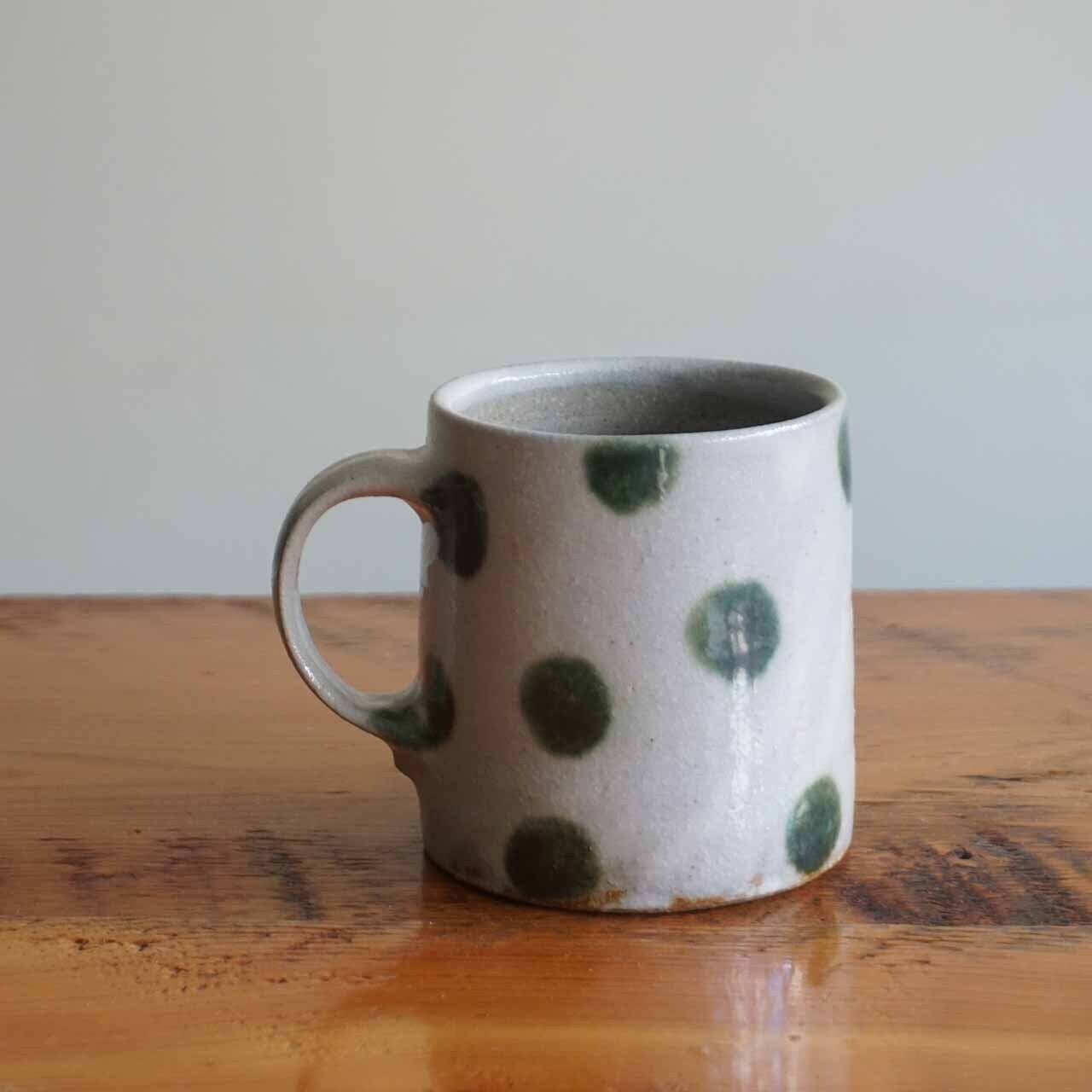 緑色の点打ち模様が優しいマグです。